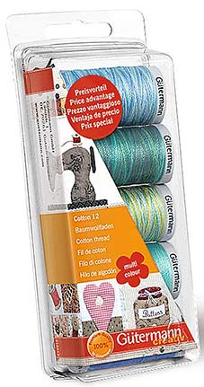 GÜTERMANN STICKFADEN-SET COTTON 30 300M, 5 SPULEN, BLUE / GREEN, 162x68x30MM (KEIN LAGERARTIKEL)