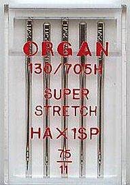 O-SUPERSTRETCH75 ORGAN DOSE: NÄHMASCHINENNADEL SUPERSTRETCH NR.75, DOSE A 5 NADELN - VERKAUFSEINHEIT CRT. A 50 DOSEN Mittlere Kugelspitze, Spezial-Hohlkehle. Für Jersey, hochelastische Wirkwaren, Latex, Lycra, Strickware (mittel- grobmaschig), Stretch etc. Bestellmenge 50 Dose