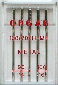 O-METAL90-100 ORGAN DOSE: NÄHMASCHINENNADEL METAL FÜR METALLICFÄDEN 3 X NR.90, 2 X NR.100, DOSE A 5 NADELN - VERKAUFSEINHEIT CRT. A 50 DOSEN Mittlere Kugelspitze schützt den Faden vor dem Zerstechen. Grosses, ausgeprägtes Nadelöhr verhindert unnötige Reibung. Für das Nähen mit Metallic- oder Effektfäden. Bestellmenge 50 Dose