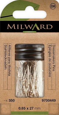MILWARD GREEN GLASKOPFSTECKNADELN, 0.65 x 34MM, NICKEL, BLISTER À 95 STK. ● Die Köpfe werden durch ein heißes Bügeleisen nicht beeinträchtigt. Bestellmenge 5 Blister